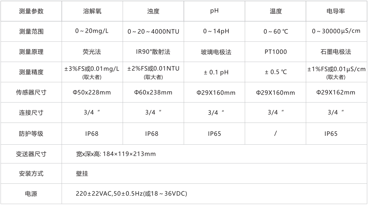 2.溫度、pH、電導率、溶解氧和濁度同時監(jiān)測