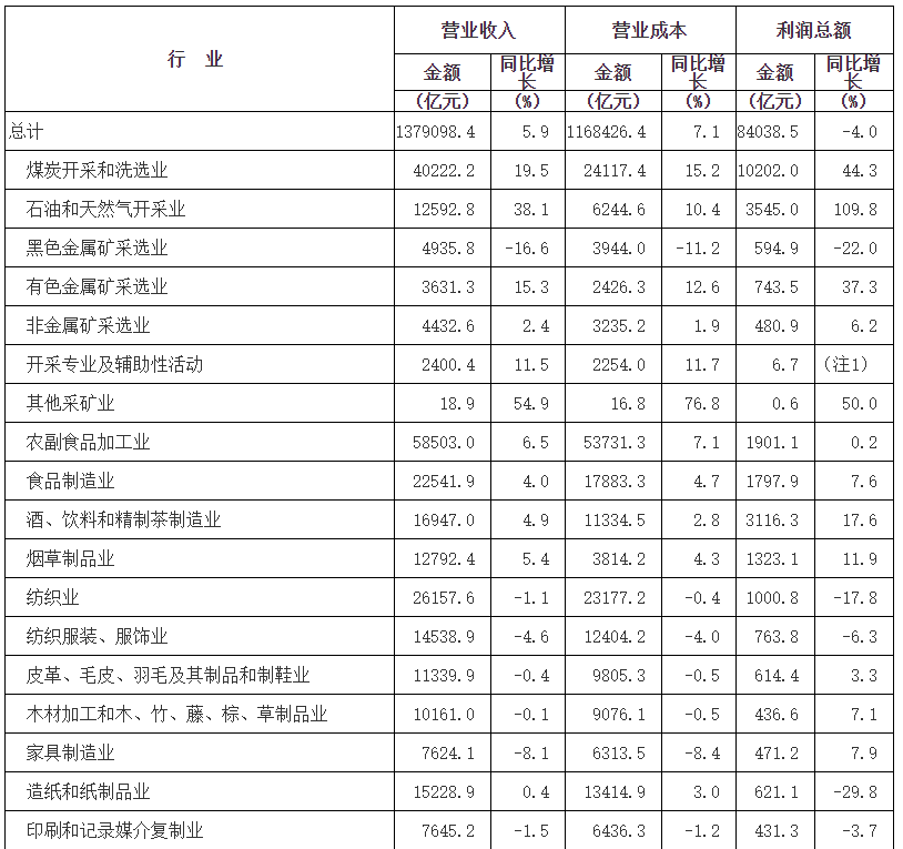 3.有色金屬冶煉和壓延加工業(yè)下降16.1%,紡織業(yè)下降17.8%,石油、煤炭及其他燃料加工業(yè)下降82.8%,黑色金屬冶煉和壓延加工業(yè)下降91.3%。